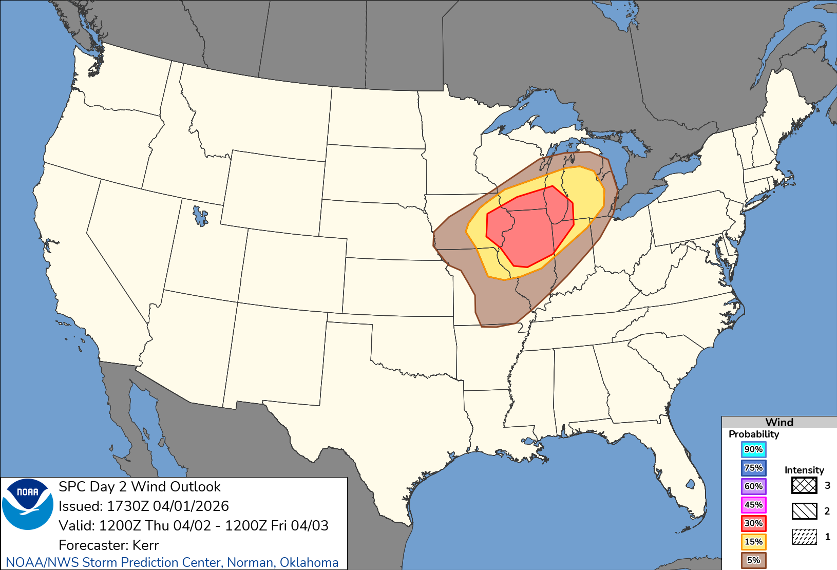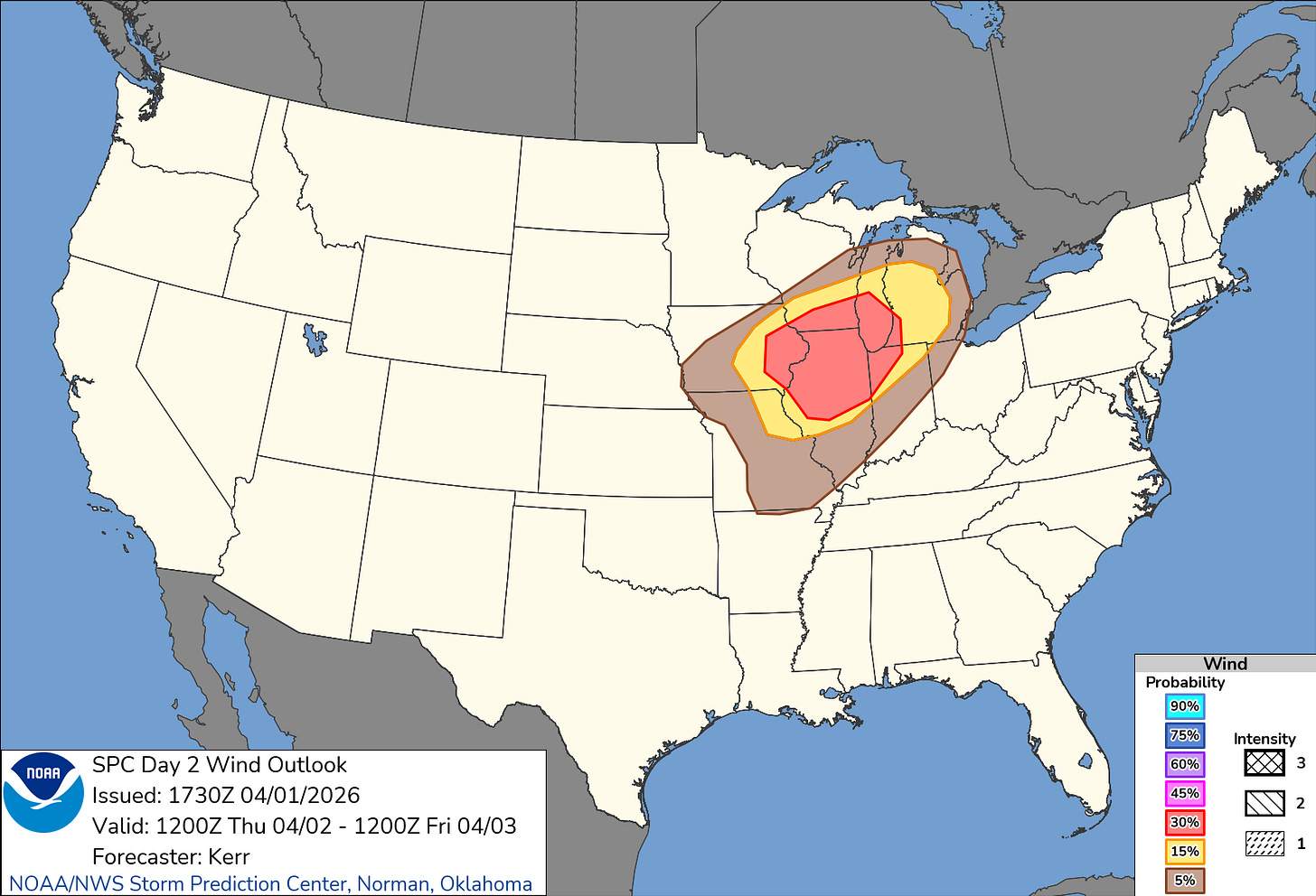 We are also under a 30% damaging wind risk, which is pretty much as high as we ever get here, but it is not a hatched (additional intensity) risk, so that’s good.