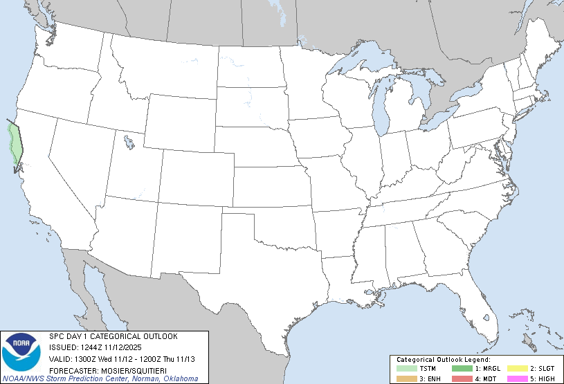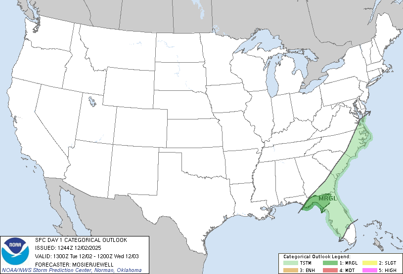 The Storm Prediction Center (SPC) ranks the likelihood of severe weather in the following order of severity: High, Moderate, Enhanced, Slight, Marginal, & General Thunderstorms.